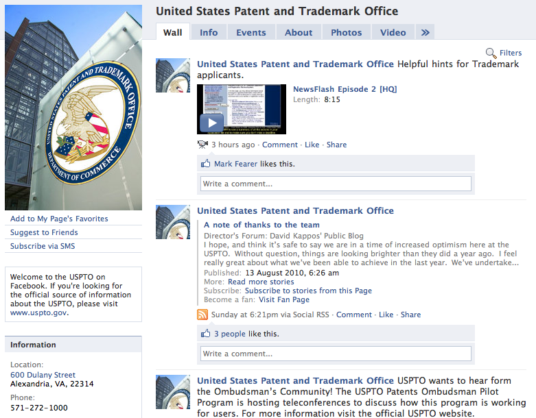 In addition to communicating directly with the USPTO, Facebook users can expect to see an array of content and information, including press releases, posts from Director Kappos’ “Director’s Forum” blog, event information, photos and video.