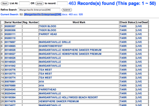 It turns out that someone at Margaritaville Enterprises must get drunk on filing trademark applications…463 filed so far!