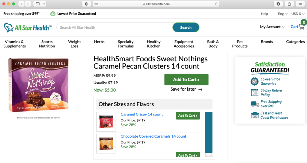 Sweet Nothings – a brand of nougat cluster candy offered by Healthsmart, located in Indiana