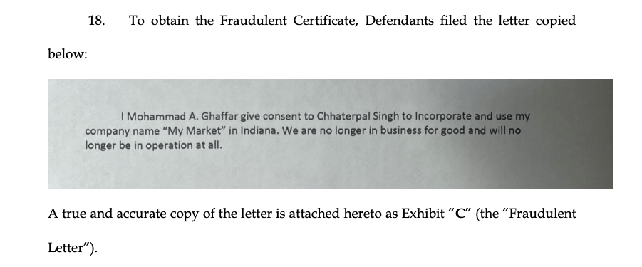 In addition to using an identical name, the defendant in the latest Indiana trademark lawsuit is accused of submitting a fraudulent letter to the Indiana Secretary of State claiming permission to use the name. The Kingston, Indiana grocery store is allegedly operating as “My Market” without the authorization of the plaintiff, who has prior rights in the name.