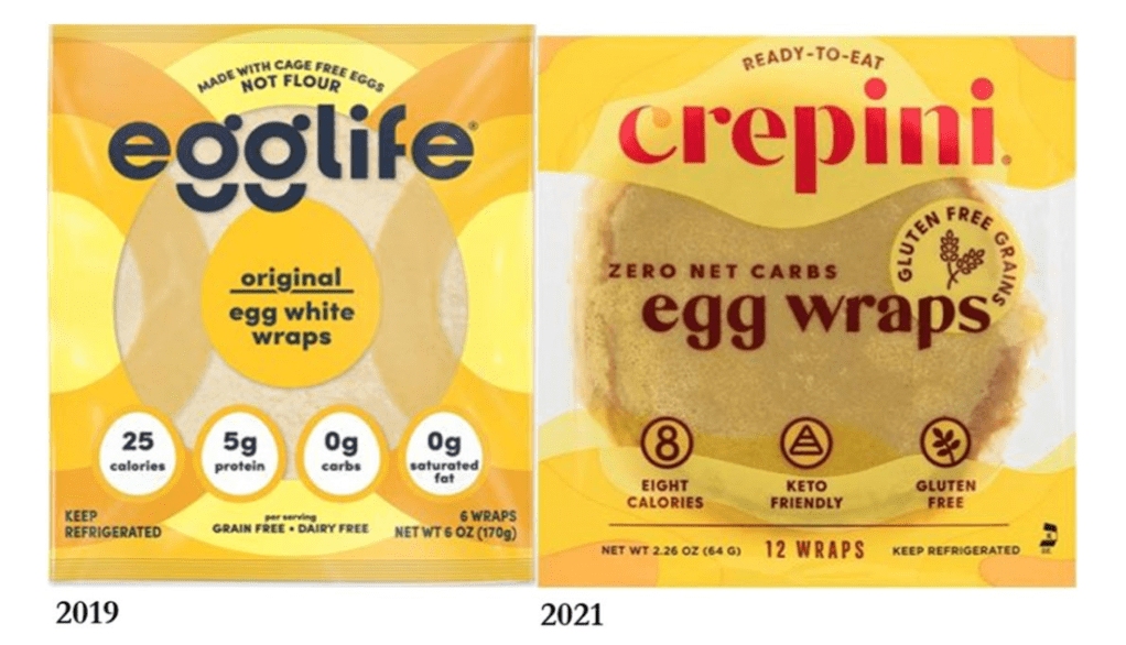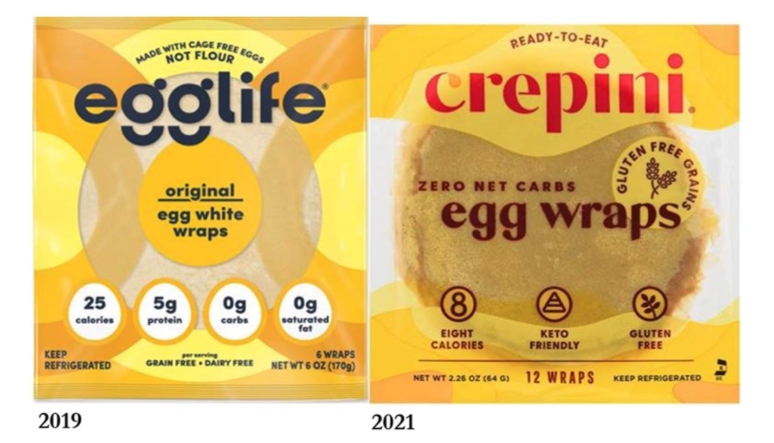 The Plaintiff in this lawsuit, Egglife, is accusing the Defendant, Crepini, of adopting packaging that is too similar to their own egg white wrap packaging.