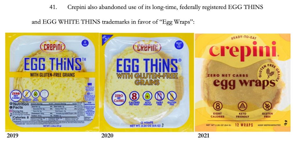 Here’s a fairly interesting trade dress lawsuit involving a food product I didn’t even know existed…egg white wraps. Apparently, egg white wraps were the “number one new product in dairy departments…in 2020” (see Complaint below). It begs the question, how many other new dairy products were released in 2020? Dairy product connoisseurs, please educate me in the comments below.